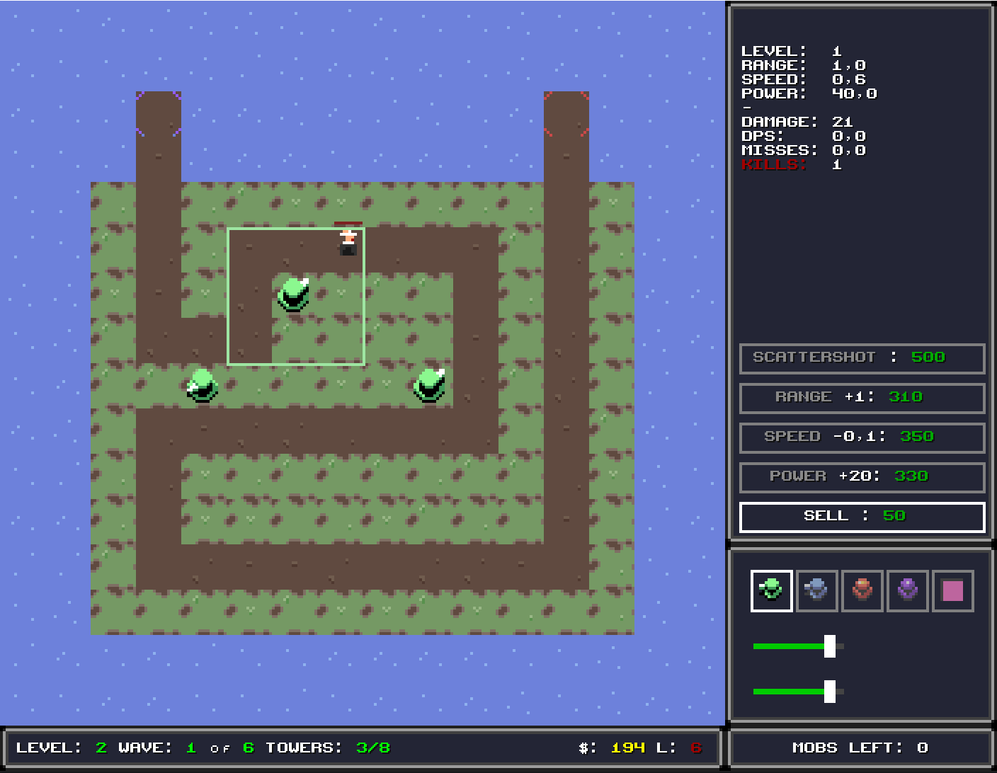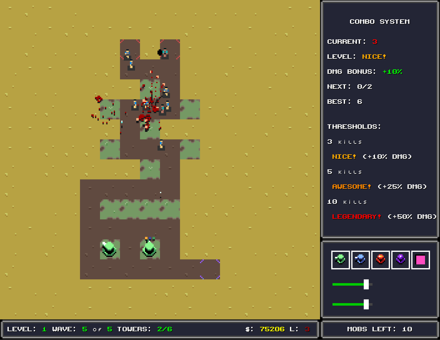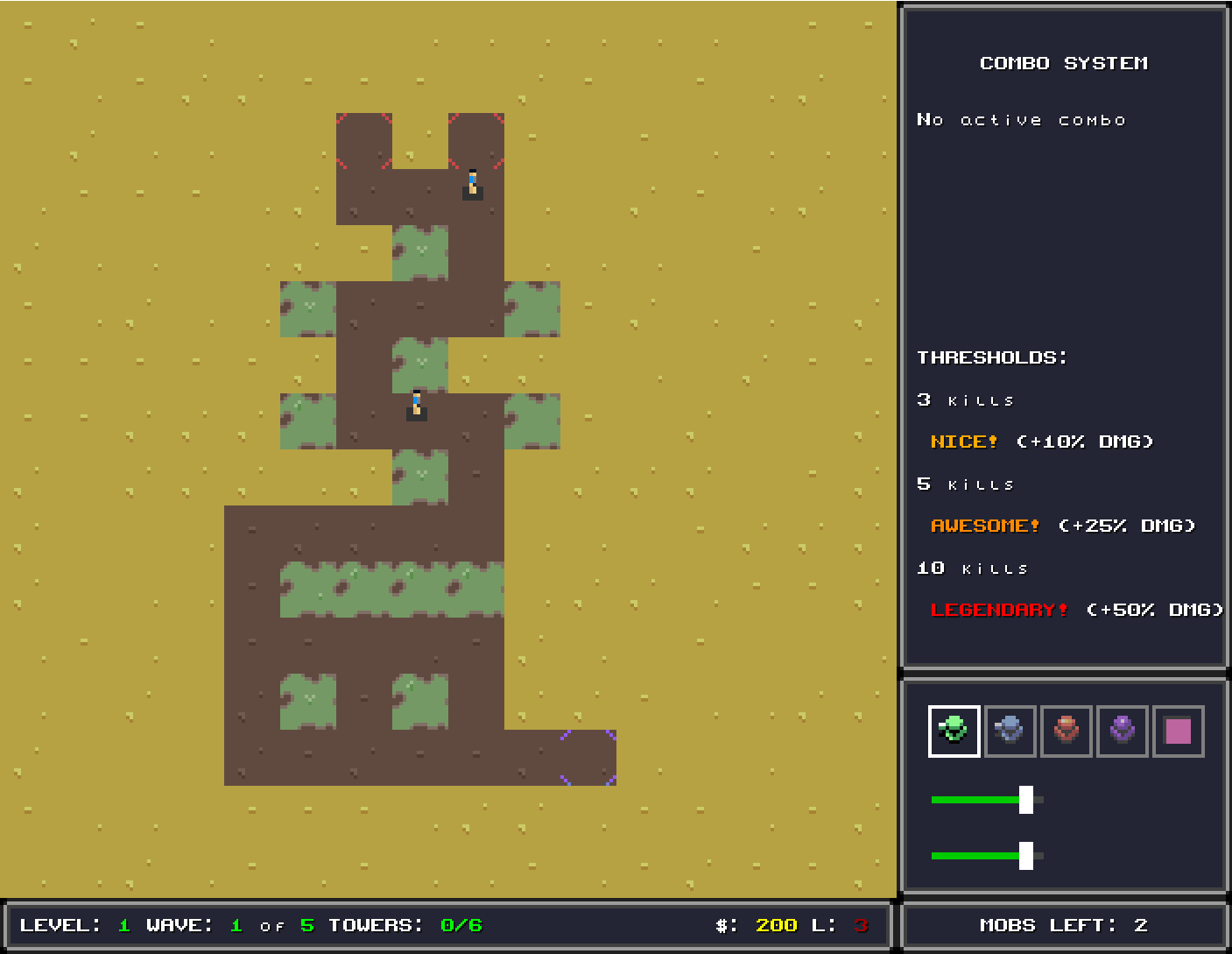 No Java install needed - it’s a standalone .exe. There are a few levels, enemy waves, tower upgrades, and a kill-streak system: if you take down 3/5/10 enemies in a row, you get a temporary damage boost. There’s also one weird tower with no icon that does nothing but print money - a little loose thread for future development.